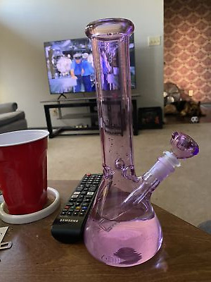 Home / Glass Bong / 11" Purple Glass Bongs Hookah Water Pipe Heavy Beaker 14mm Bowl