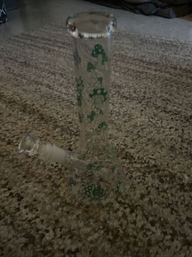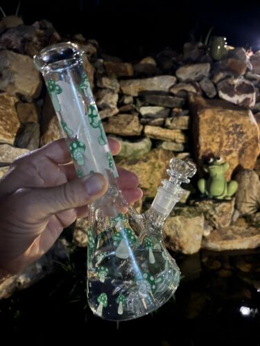 Green Mushroom Glass Bong Water Pipe Beaker Bubbler |10.4inch