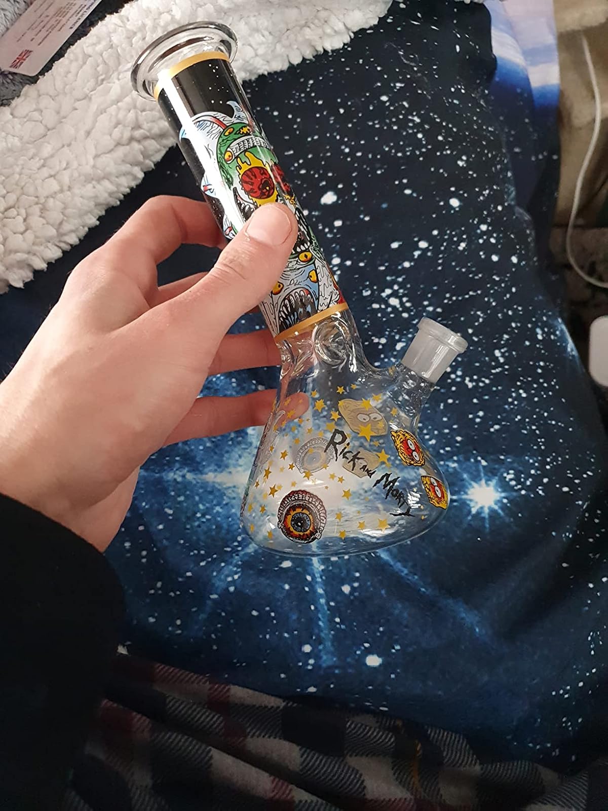 - Rick and Morty Artwork: The vibrant and detailed glass bong brings the world of Rick and Morty to life. Fans of the show will appreciate the attention to detail and the fun, colorful design.